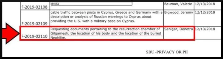 FOIA declassified document request by proxy, staff of Clinton: Resurrection Chamber of Gilgamesh and Nephilim